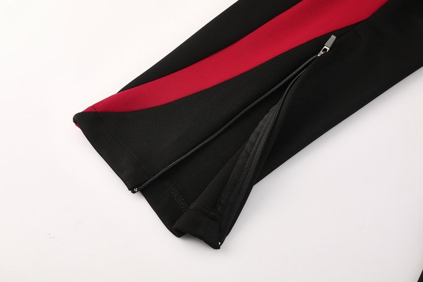 Tapered Trousers: The joggers have an elasticated waist and a tapered fit for a modern, athletic look. A red accent panel near the ankle ties into the jacket's color.
