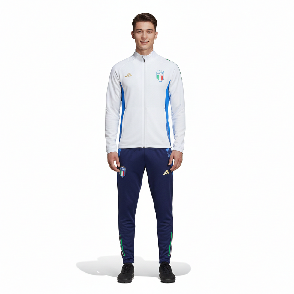 National Pride: Features the official Italian National Team (FIGC/Italia) crest prominently on both the jacket and the trousers.