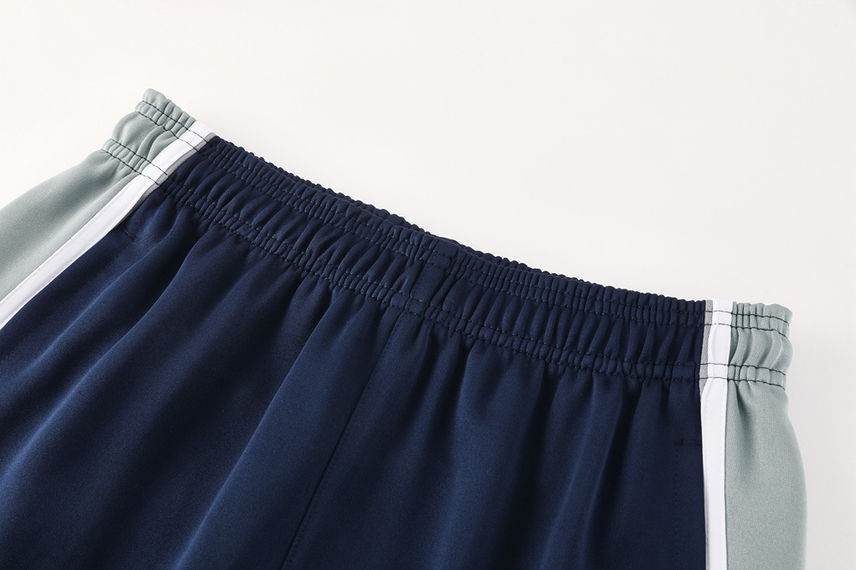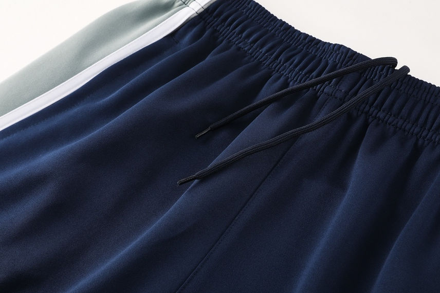 Color Block Design: The jacket showcases a sophisticated color block design in Navy Blue and Grey, giving it a sharp, modern aesthetic. The pants maintain the primary navy color with striking grey and white panel detailing.
