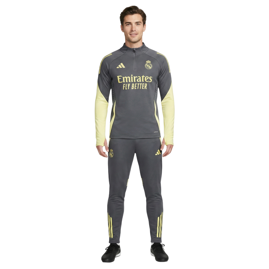 Real Madrid 1/4 Zip trainingspak combineert ademend materiaal met een strakke pasvorm.