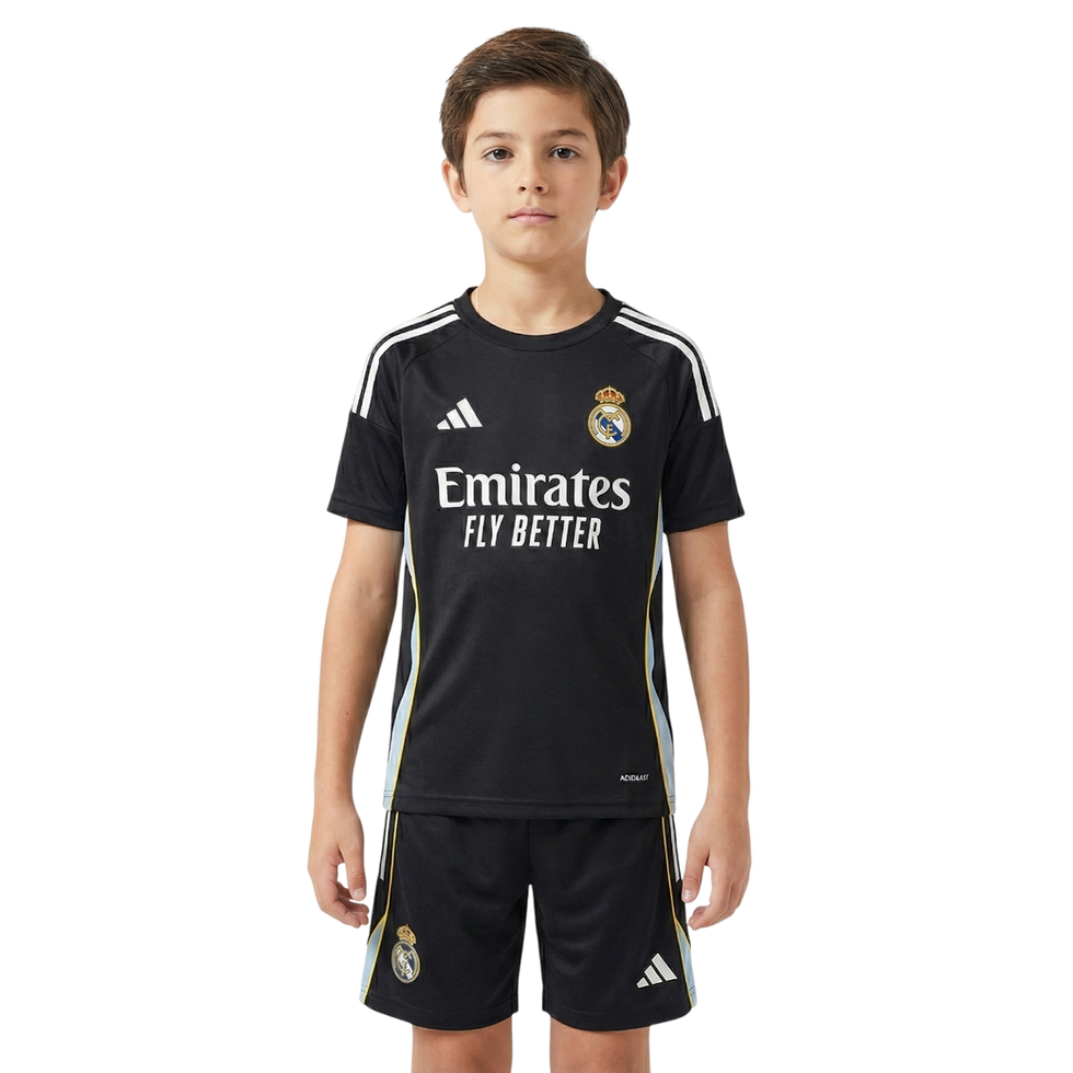Zwart Real Madrid shirt met koninklijke allure. Duister en stijlvol.