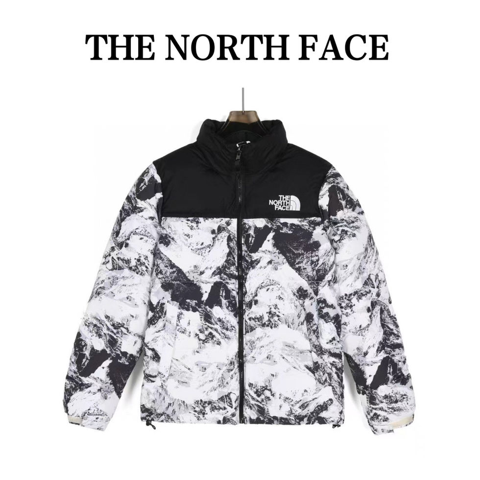 Make a bold statement with the The North Face 1996 Retro Nuptse Jacket in a dramatic Black and White Mountain Print. This jacket takes the iconic, boxy silhouette of the legendary Nuptse and refreshes it with a graphic print inspired by snowy peaks or marble camouflage. Combining this high-impact aesthetic with powerful 700-fill down insulation, it offers premium warmth and undeniable style.