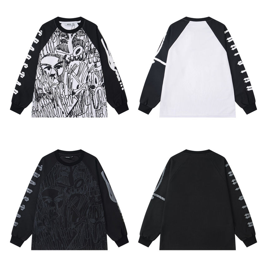 Make an artistic and edgy statement with the TRAPSTAR Abstract Scribble Art Long Sleeve Tee. This crewneck features a dense, all-over graphic on the torso reminiscent of urban street art or intricate sketches, blending artistic expression with signature streetwear branding.