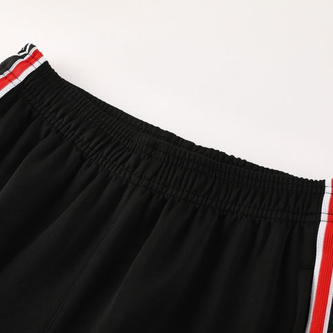 Umbro Side Tape: A hallmark of retro Umbro designs, the set features dynamic red, white, and black patterned side tape running down the jacket sleeves and trouser legs.